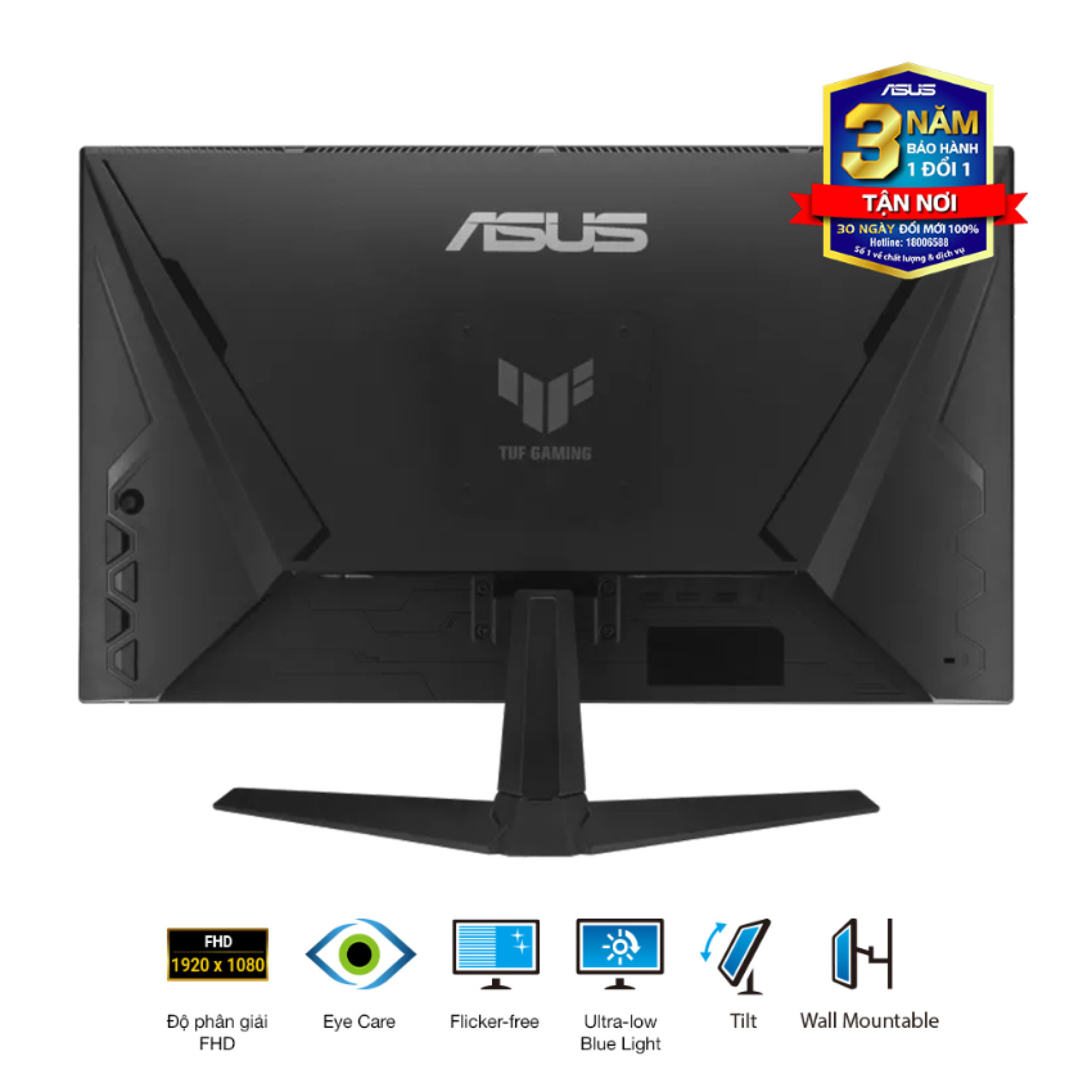 Asus TUF VG259Q5A không chỉ quan tâm đến hiệu năng mà còn chú trọng đến sức khỏe của người dùng. Công nghệ Flicker-Free giúp loại bỏ hiện tượng nhấp nháy màn hình, kết hợp cùng chế độ lọc ánh sáng xanh (Low Blue Light) đạt chứng nhận của TÜV Rheinland, giúp đôi mắt của bạn luôn thoải mái ngay cả sau những phiên chơi game kéo dài nhiều giờ liền.